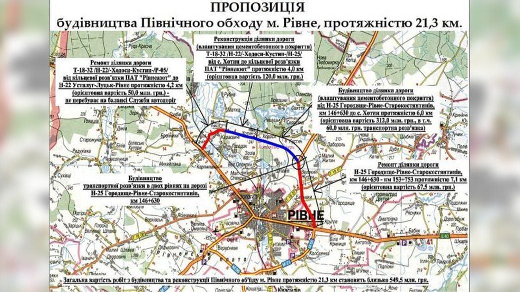 Заступник міністра фінансів Олександр Кава в кінці 2024 року розповідав, що об’їзна дорога на півночі Рівного готова на 80%. Вона має розвантажити місто від транзитного транспорту, який рухається по шосе М-06 із Києва в напрямку Луцька та пунктів пропуску «Устилуг» і «Ягодин».