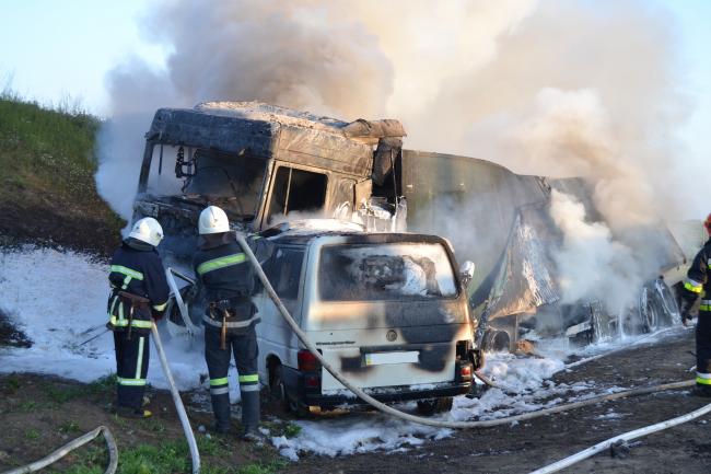 …На світанку на здолбунівській об’їзній рятувальники кілька годин гасили два автомобілі — вантажівку «Рено» та мікроавтобус «Фольксваген». Палало, кажуть пожежники, як у пеклі. Поки слідчі оформляли автопригоду, дорожники ліквідовували її наслідки. Рух трасою частково обмежили. Дорожники встановили обмежувальні знаки, щоб зменшити ризик для інших водіїв. Адже на дорозі розлито пально-мастильні матеріали, і вона стала дуже слизькою, отож її засипали піском.