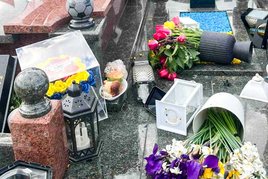 Невідомі на могилах трьох захисників перевернули квіти та лампадки, а на одній з них ще й пошкодили хрест, повідомляє поліція Рівненщини.