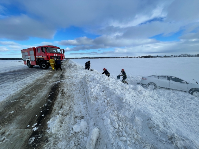 Співробітники ДСНС відбуксирували автомобіль з кювету на проїжджу частину дороги.