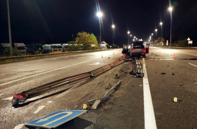 Як повідомляє поліція області, «BMW X5» на швидкості протаранив понад 40 метрів відбійника та зніс два дорожніх знаки.