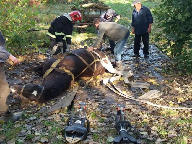 На надання допомоги виїхали бійці 5-ї державної пожежно-рятувальної частини міста Дубно. Рятувальники з’ясували, що тварина провалися на проїздному металевому мосту, критому бляхою. Нога кобили по саме стегно застрягла між бляхою та металевими рейками.
