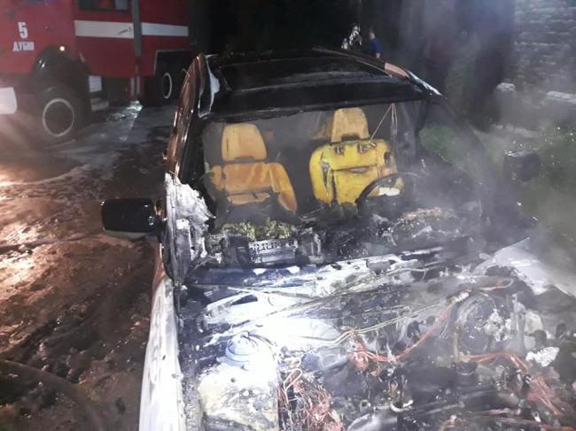 Вогнем знищено моторний відсік та салон автомобіля. Пошкоджено задню частину автомобіля.
