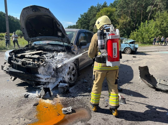 Рятувальники повідомляють, що внаслідок зіткнення двох легкових автомобілів та вантажівки постраждав один із водіїв.