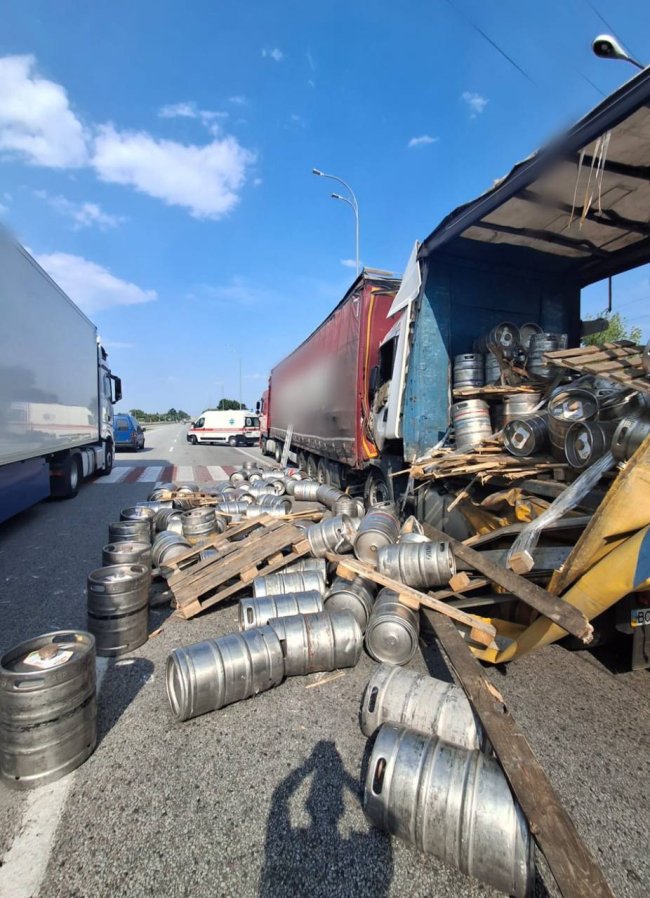 Патрульна поліція повідомила , що рух однією смугою траси перекритий.