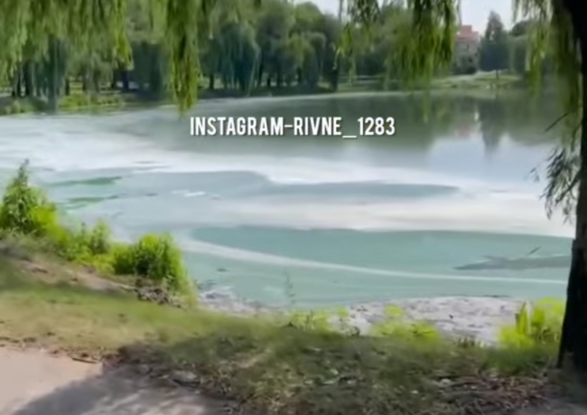 На відео видно, як поверхня води вкрилась зеленою плівкою. Читачі кажуть, що від озера доноситься неприємний запах.