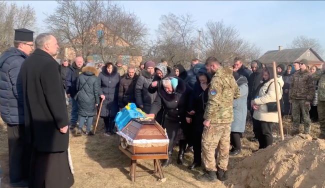 На колінах, «живим коридором», обабіч дороги з квітами й державною символікою односельчани, побратими, духівники та представники влади проводжали кортеж із полеглим Героєм.