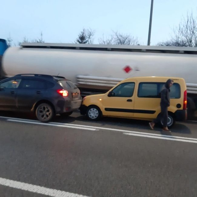 Водій Renault Kangoo , не вибрав безпечної швидкості руху, не врахував дорожньої обстановки, не відреагував на її зміну та не дотримавшись безпечної дистанції зіткнувся з попутнім автомобілем Subaru crosstrek.
