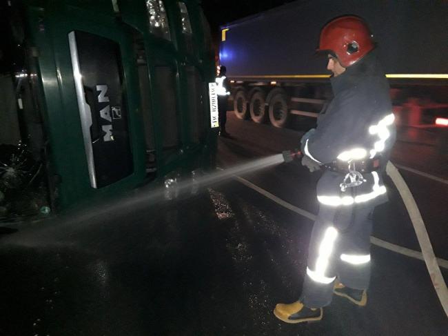 Рятувальників туди викликали працівники Дубенської міської станції швидкої медичної допомоги. Водій вантажівки МАН, яка перекинулась, перебував в автомобілі та самостійно вийти не міг. Спільно з працівниками медичної служби рятувальники дістали постраждалого з понівеченого автомобіля та передали до карети швидкої медичної допомоги. Потім змили паливно-мастильні матеріали з дороги.