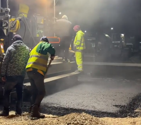 На кільці у Рівному кладуть асфальт навіть уночі, бо Третяк хоче встигнути (ВІДЕО)