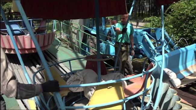 Ми сьогодні проводимо випробування атракціонів, навантажуємо. Кожне місце – 60 кілограмів. Прокручуємо атракціони, каруселі. Для того, щоб потім зробили висновок, що потім можна експлуатувати наші каруселі. Сьогодні «Орбіту» і «Колесо огляду». І «Вихор» сьогодні випробовували, – розповів журналістам ТРК “Ритм” працівник парку Володимир Нікітюк.