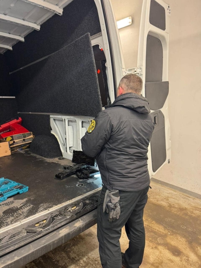 Прикордонники оприлюднили відео, як з-під обшивки мікроавтобуса дістають заховані iPhone.