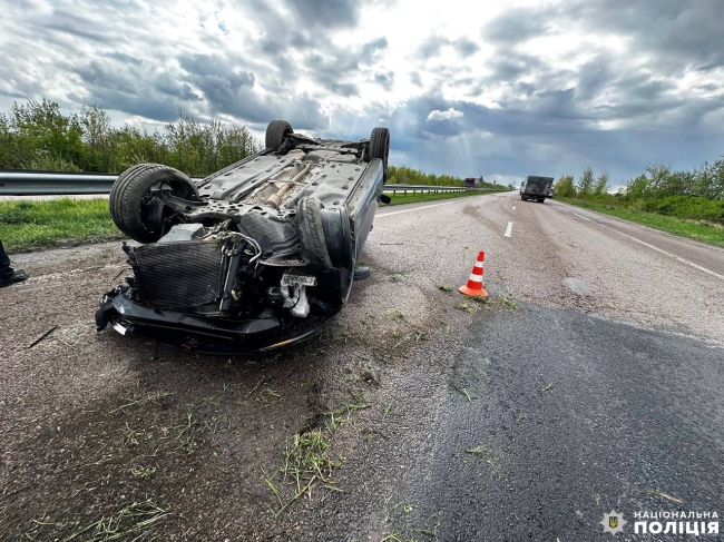Близько 16 години водій легкового автомобіля врізався у відбійник, повідомляє поліція Рівненщини. Від удару авто перекинулось.