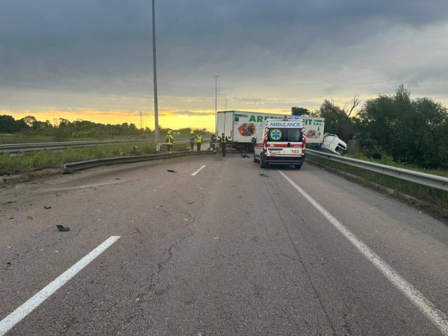 Вантажівка агрофірми протаранила відбійник та перегородила трасу.