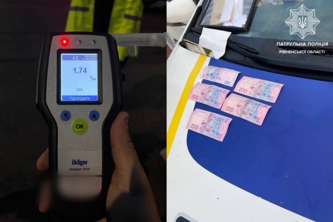 Результат огляду виявився позитивним, прилад зафіксував 1,74 проміле алкоголю в крові водія.
