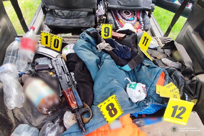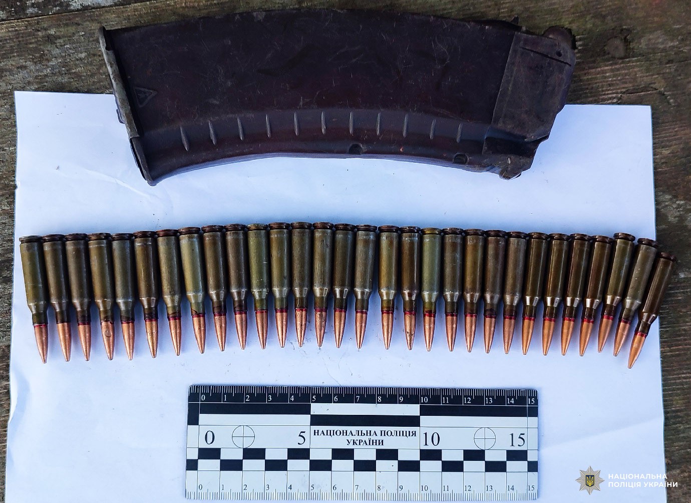 Під час обшуку виявили та вилучили автомат АКС-74У, 3 магазини, 151 патрон калібру 5,45 мм, 7 гільз калібру 5,45 мм та гранату «Ф-1».