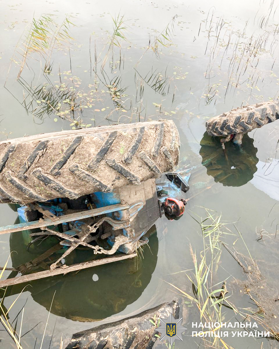 Однак 44-річний водій не розрахував край берега, тому трактор з причепом звалився у водойму.