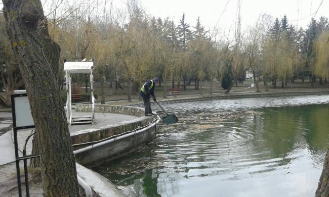 Фонтан, який мав би допомагати самоочищенню і наповненню киснем озера “Лебединка”, нині не працює. Не виключено, що риба у водоймі задихнулась. Її звідти сьогодні намагаються виловити.
