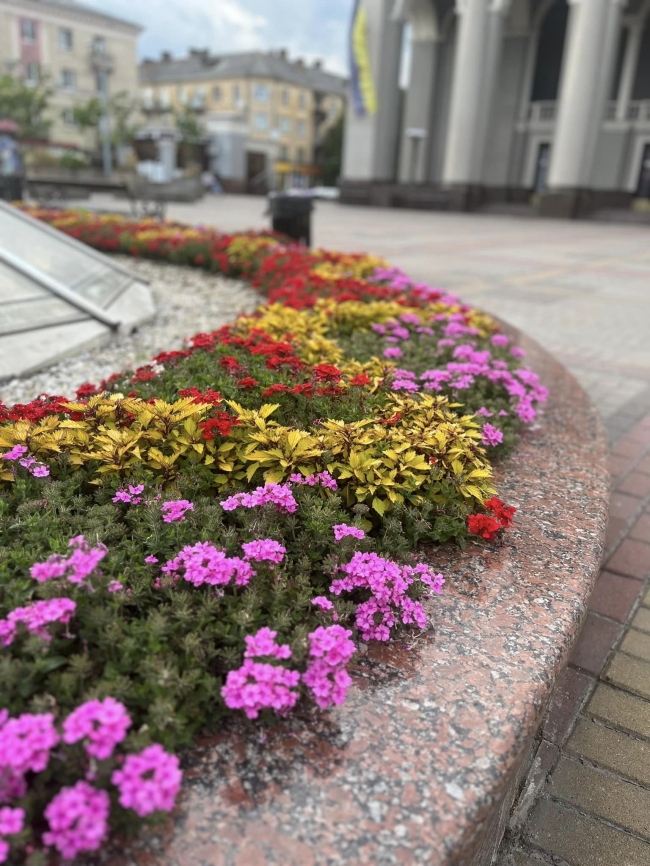 Що цікаво, над створенням деяких клумб у центрі Рівного працювали дизайнери, які продумали геометричні візерунки. Одну з таких можна побачити на Театральній площі. Як пояснили у ТЗГ, ще у травні на ній були висаджені колеуси, синя і червона вербена та цинерарії. Тепер же клумба у повному розквіті, і від неї неможливо відірвати очей.