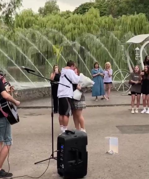 Вражені побаченим, вони щиро аплодували закоханим. Дівчина сказала коханому:”Так!”. Кохання їм та щастя ! А нам усім – більше позитивних новин.