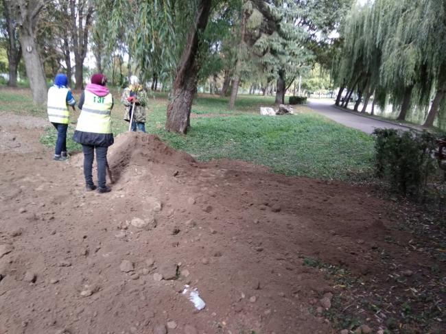 Там була яма від викорчуваного дерева. Ще один клапоть облагородять під газон неподалік – поблизу лавок.
