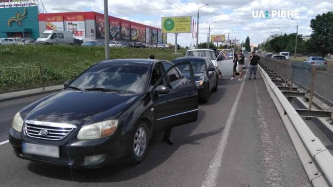 Як повідомляє “UA:Рівне“, перед пішохідним переходом бус “VOLKSWAGEN Transporter” в’їхав у “BMW”. За інерцією “BMW” зачепило ще одну автівку. Ніхто не травмувався.