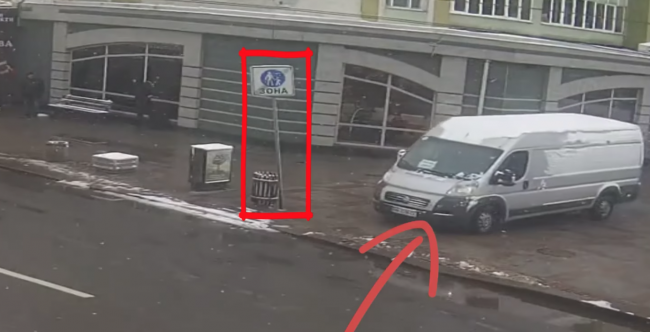 Камери зафіксували, як автомобіль збив знак “пішохідна зона” біля зупинки й поїхав далі.