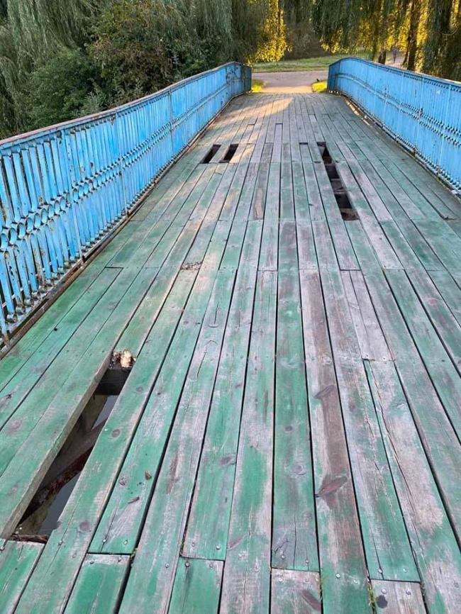 Увагу на це звернула рівнянка Марія Горуна, опублікувавши фото плачевного стану містка: