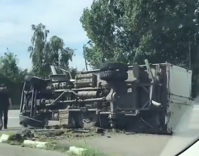 Оскільки вантажівка перевернулася на острівець безпеки, то ДТП не спричинилося заторів.