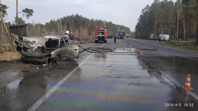 Пожежно-рятувальна міста Сарни розповіла про цей випадок у Фейсбуці. Повідомлення про загоряння автомобіля на автодорозі Київ-Ковель поблизу села Страшеве рятувальники отримали сьогодні за кілька хвилин до 16-ї години. Коли приїхали до місця виклику, вогнем охоплено автомобіль ДЕУ Нубіра, 2003 року випуску. Вдалося запобігти вибуху газового балону.