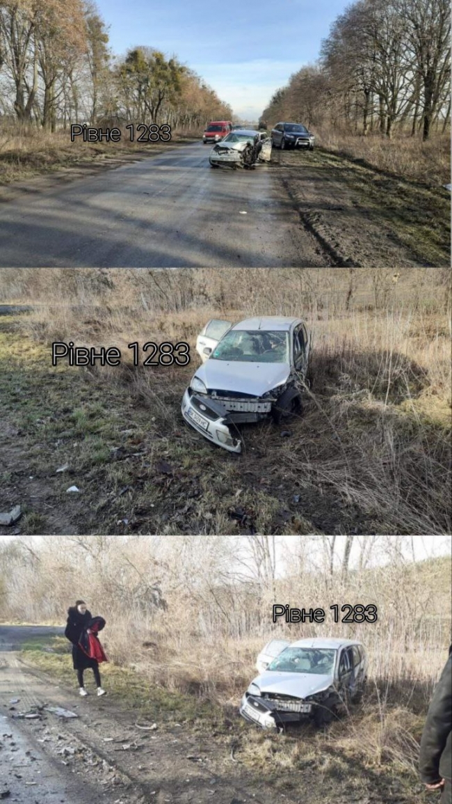 Фото і відео з місця події виклали в телеграм-каналі Рівне 1283. Після зіткнення одна з машин злетіла з дороги, біля іншої – працюють рятувальники, пиляючи метал.