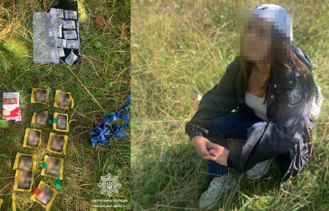 Патрульні вирішили поспілкуватись із дівчиною. Вона нервувала та спробувала непомітно викинути пачку з-під цигарок. У пачці знаходився згорток, обмотаний клейкою стрічкою синього кольору, в якому, ймовірно, знаходились речовини, схожі на наркотичні.