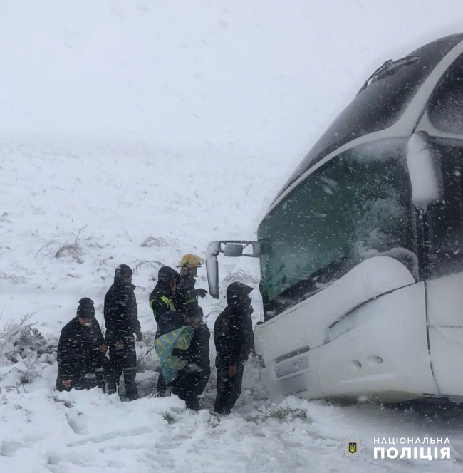 – Автобус Бухарес-Одеса з 42 пасажирами застряг на узбіччі біля села Новосільське. Ніхто не постраждав, усіх відвезли до місцевих шкіл, – повідомили в поліції.