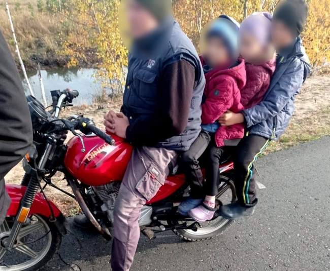 Сьогодні, 27 жовтня, неподалік села Дроздинь інспектори зупинили мотоцикл під керуванням 31-річного місцевого жителя. Чоловік був без мотошолома та ще й перевозив трьох дітей.