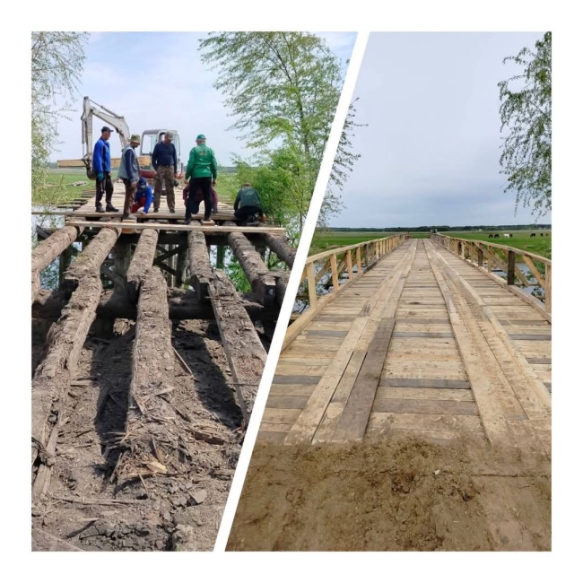 Матеріали для ремонту закупили за кошти з бюджету Сарненської громади, а всі основні роботи — порізка лісоматеріалу, демонтаж старого настилу та облаштування нового — виконали самі мешканці села.