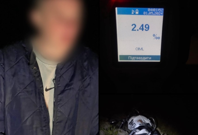 На 22-річного керманича склали протокол за ч. 1 ст. 130 (Кермування у стані сп’яніння) та винесли постанову за ч. 2 ст. 126 (Водій не мав необхідної категорії) КУпАП.