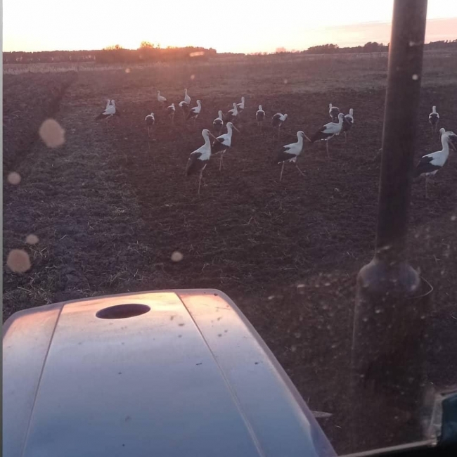 На відео видно, як пернаті ходили по полю, аби чимось поживитись.