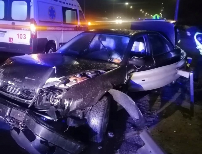 Як повідомляють рятувальники, о 17:57 на трасі поблизу села Молодаво-2 Дубенського району автомобіль «Audi» врізався у відбійник.