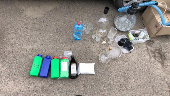 За результатами проведених 12 обшуків виявлено та вилучено понад 30 рослин кущового канабісу, близько 2 кг висушеного та подрібненого листя канабісу, понад 500 грамів порошкоподібної речовини білого кольору, схожої на амфетамін, а також хімічні речовини, скляні поверхні та колби для виробництва наркотичних засобів, мобільні телефони, сім-картки операторів мобільного зв’язку, банківські картки, 2 гранати, 2 пістолети, 1 рушницю та інше.
