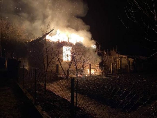 Сьогодні о 2:01 ночі у с. Карасин Сарненського району на вулиці Миру у приватному господарстві вогнем було знищено господарчу будівлю.