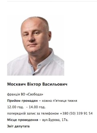 Депутат Костопільської міської ради від ВО “Свобода” Віктор Москвич, згідно з декларацією за 2024 рік, є власником 27 млн грн, 5 транспортних засобів та трьох приватних структур, зокрема, двох костопільських сільськогосподарських кооперативів.