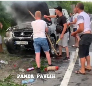 Як видно з відео, яке опублікували в Instagram-спільноті “panda_pavlik”, на допомогу до власника авто прийшли інші водії, які зупинилися неподалік та підручними засобами почали допомогати з ліквідацією загоряння.