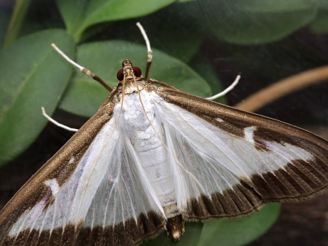 Личинки на початку виїдають нижню сторону листків, далі гусениці старших віків грубо об’їдають листя та молоду кору самшиту, обплітають їх павутиною. При значному заселенні, кущі починають стрімко всихати, втрачати декоративність і навіть гинути.