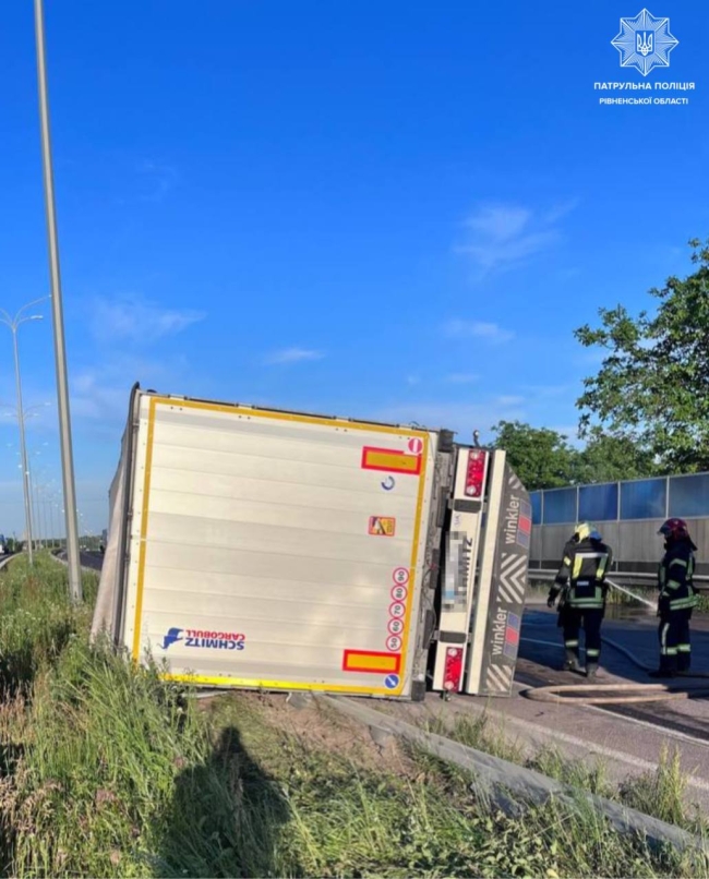 – До уваги водіїв! На автодорозі М-06 Київ — Чоп у напрямку Києва сталася ДТП: перекинувся автомобіль.