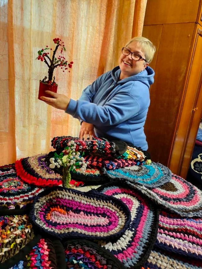 – Плетіння килимків її заспокоює, дає відчуття домашнього затишку і повертає у момент, коли думки ще не були обтяжені трагедією війни. Автентичні килимки в українському стилі приглянулись і радивилівцям: у міському Будинку культури, де сьогодні діє гуманітарний хаб допомоги внутрішньо переміщеним особам, є невеличка вітрина з її роботами, – розповідають в ОВА.