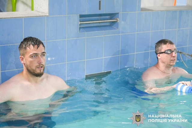 Ветерани війни Олександр Ємець та Давид Базелюк, які нині працюють у поліції, зазначають: після відвідування басейну їхній фізичний стан покращився, а водна реабілітація допомагає відчувати ще й психологічне розслаблення.