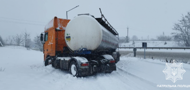 Вантажівку знесло з дороги, і водій не зміг їхати далі.