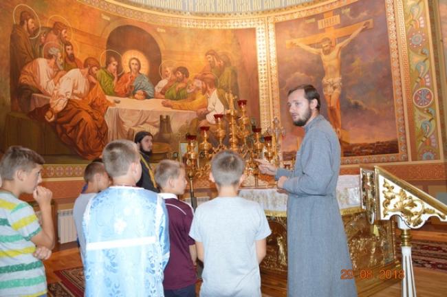 Після розгляду теми «Літургія: частини богослужіння та символічне значення основних священнодій» хлопці набували практичного досвіду поведінки в алтарі, вчилися правильно виносити підсвічники, подавати кадило, тримати плат.