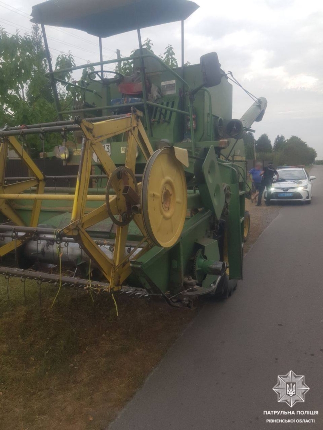Патрульні склали на 46-річного водія протокол, бо кермував напідпитку. А ще винесли постанову, бо комбайн був без номерного знаку.