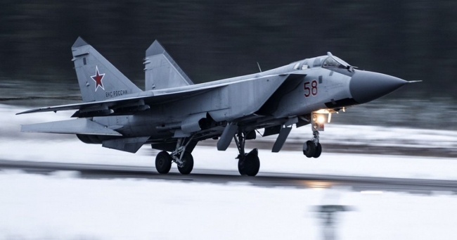 Російський «МіГ-31К», який піднявся у повітря з аеродрому в Мачулищах може бути носієм гіперзвукових ракет.